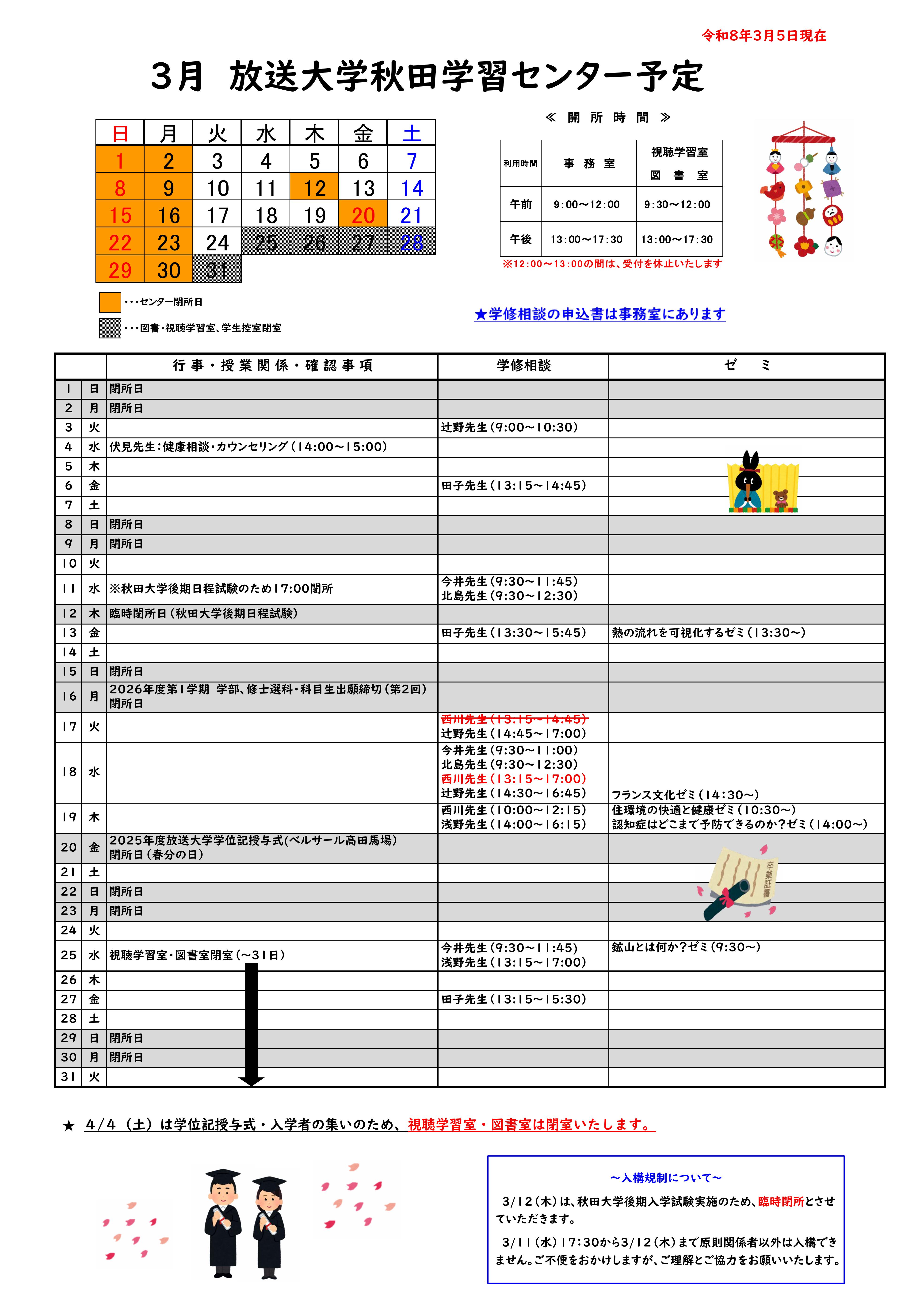 - 2026年03月12日 一般・在校生の方