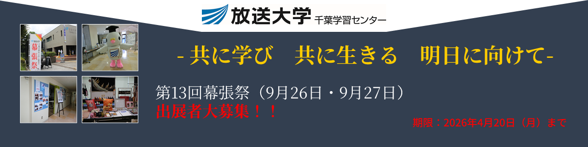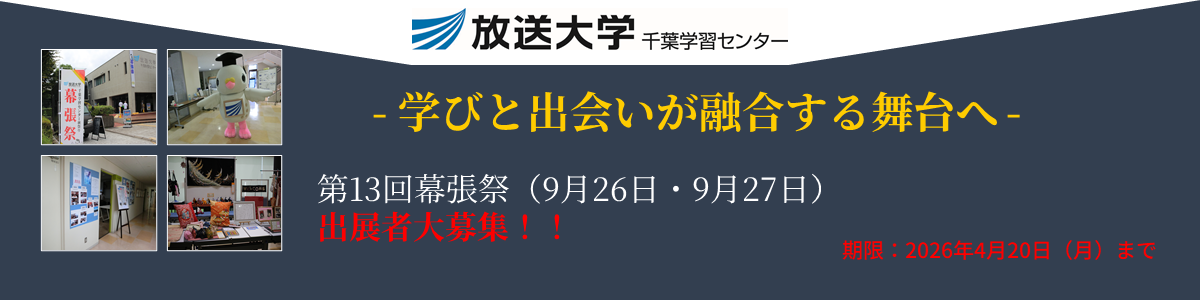つきましては、幕張祭の出展企画者を募集します。出展を希望する方は、以下の『出展申込書様式』に必要事項をご記入の上、2026年4月20日までに千葉学習センター事務室まで申し込みをお願いいたします。