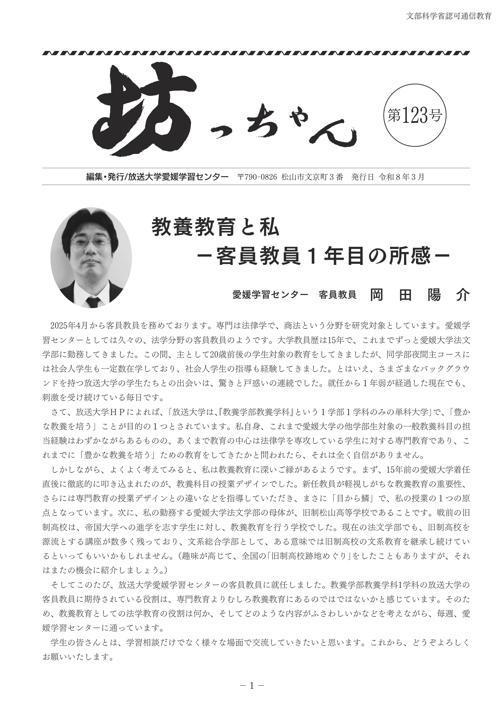 愛媛学習センターが発行する機関誌「坊っちゃん」は、6月、9月、12月、3月の年4回発行しています。