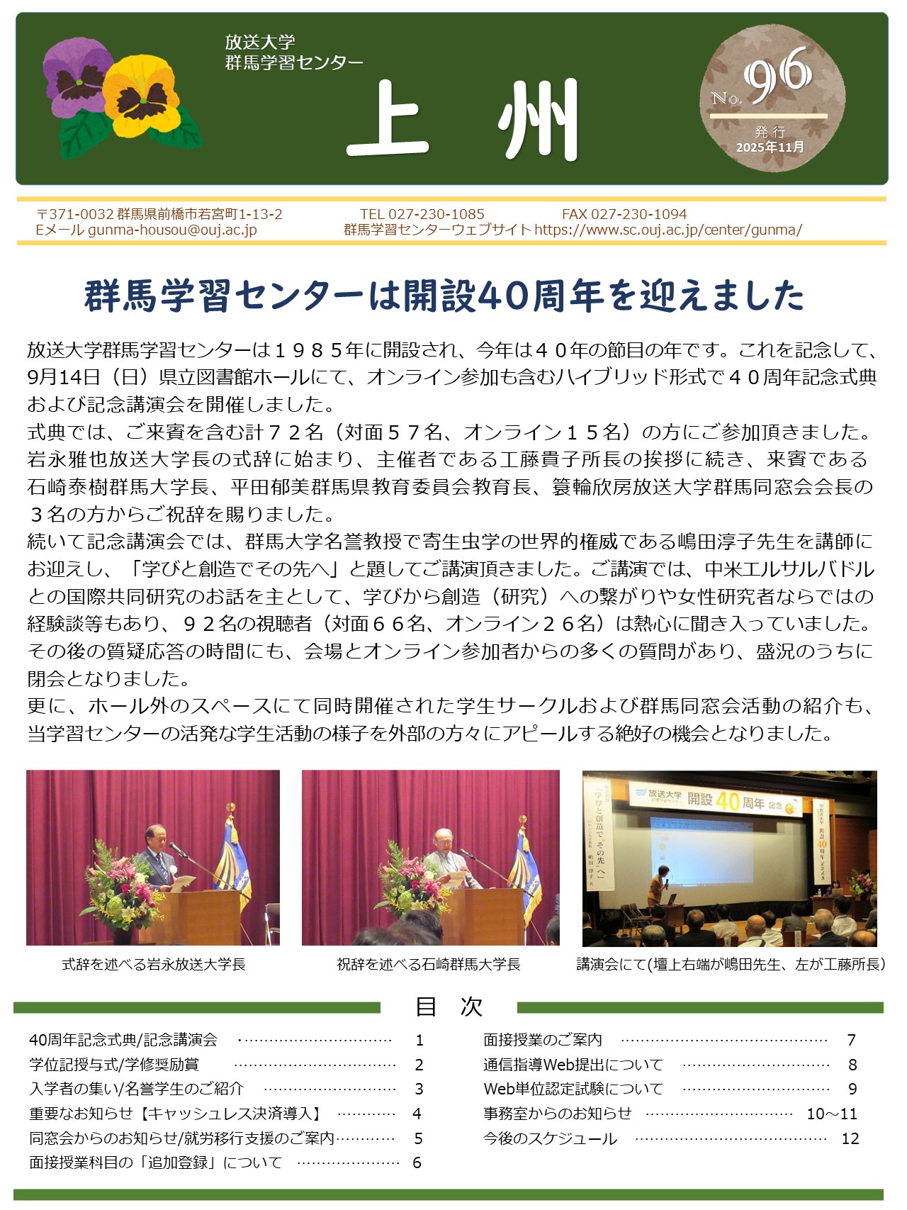 第92号より郵送を廃止してWeb掲載へ変更しました。センターにも配架しますが、部数には限りがあります