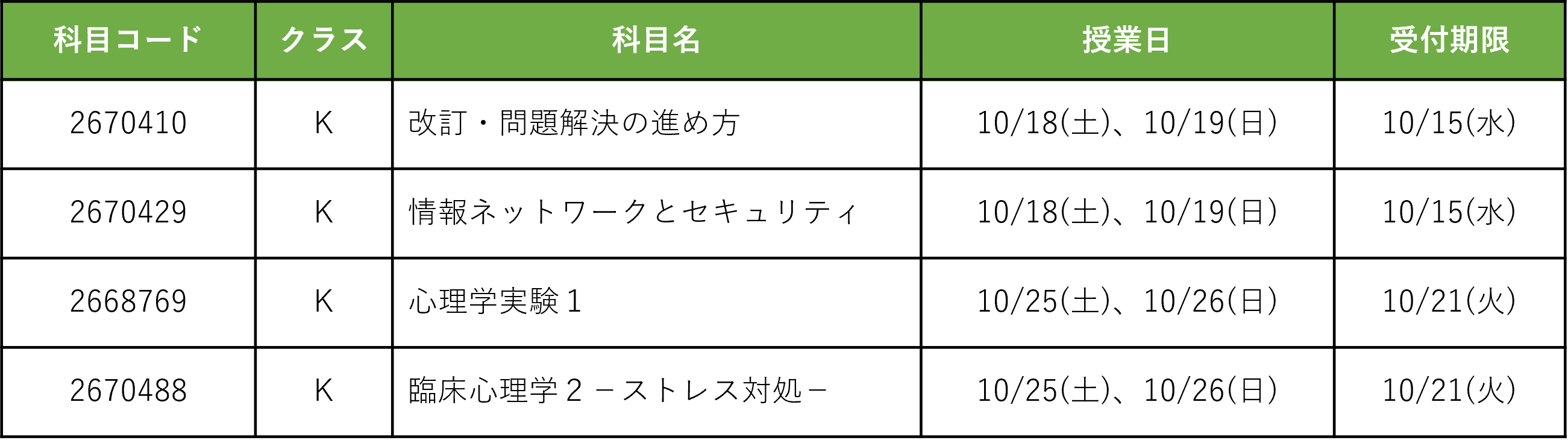 【早期先着受付】2025年度第2学期面接授業 -10/18(土)~10/25(土)授業開始科目-の追加登録について