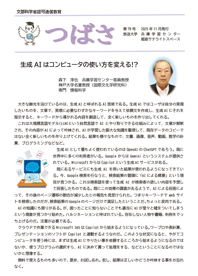 兵庫学習センター(兵庫SC)及び姫路サテライトスペース(姫路SS)の機関誌『つばさ』を、毎年3月・5月・9月・11月頃に発行しています。