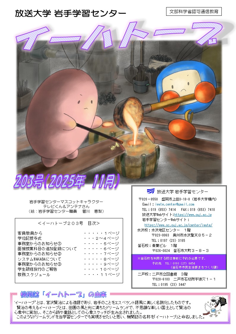 岩手学習センターにおける修学情報やゼミ・講演会等の案内、事務室からのお知らせなど情報を発信しています。