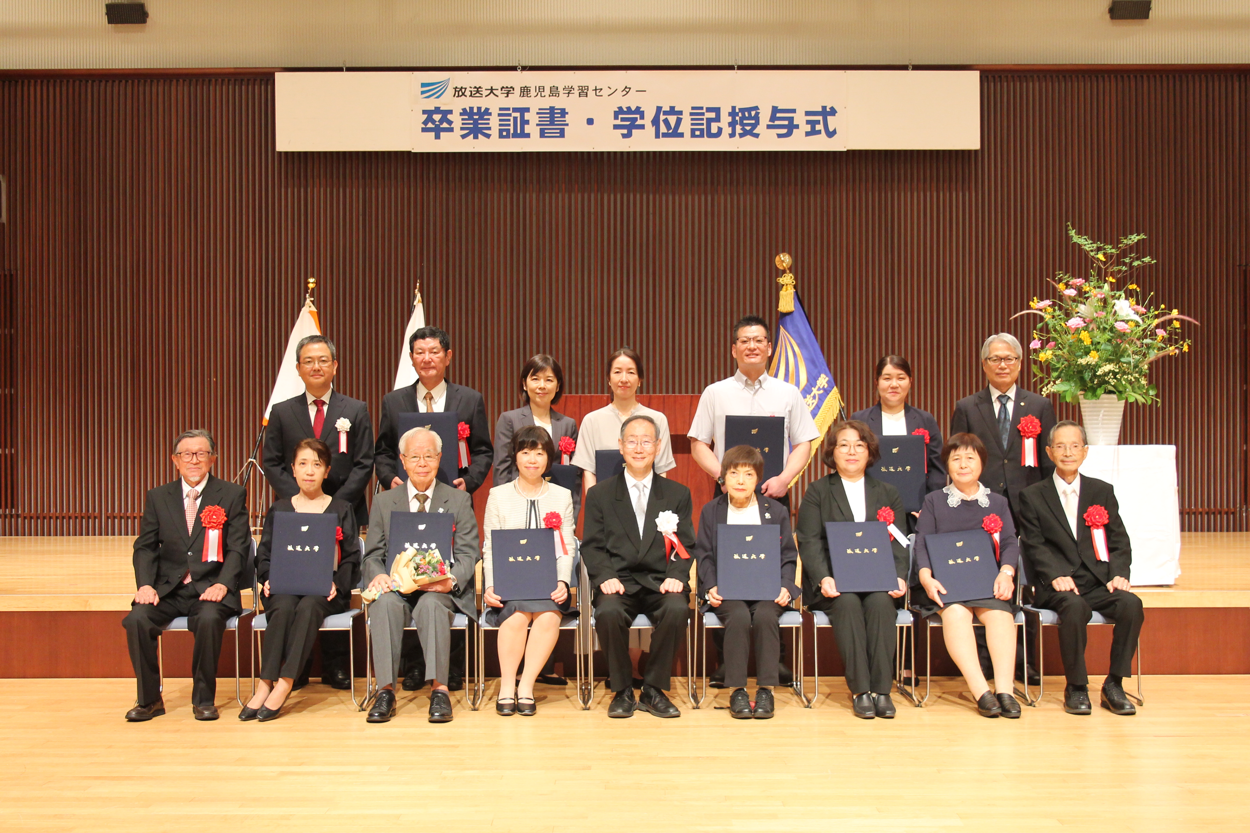 令和7年9月21日(日)カクイックス交流センター中ホールにて「令和7年度第1学期卒業証書・学位記授与式」を開催いたしました。今回、教養学部を卒業となる41名のうち11名が出席され、ご家族や来賓が見守る中で高津所長から卒業生一人一人に卒業、学位記が授与されました。続けて、鹿児島学習センター特別賞が4名の方に授与されました。