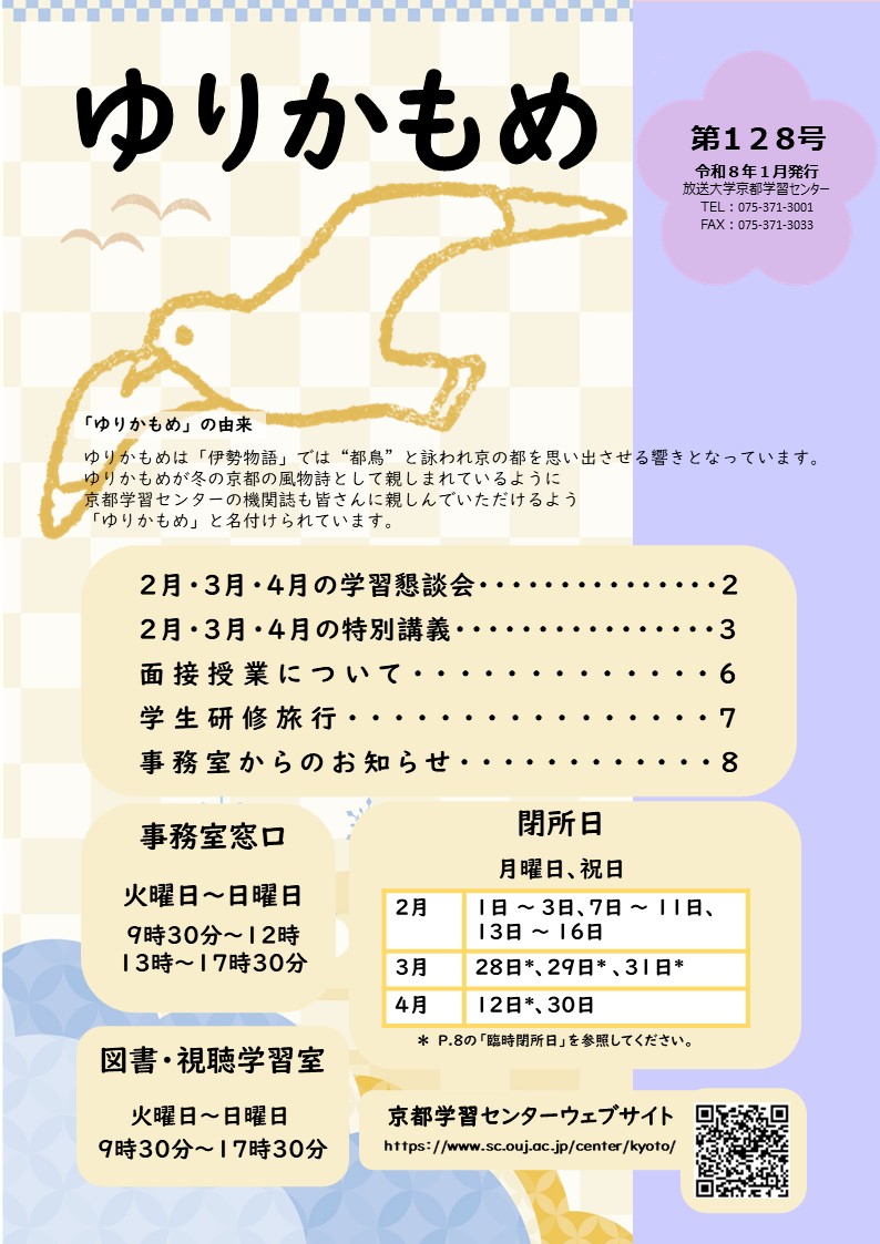 京都学習センターだより「ゆりかもめ」は京都学習センターが発行する機関誌で、4月・7月・10月・1月の年4回発行しています。