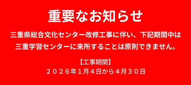 【重要】工事期間中の三重学習センターの利用について
