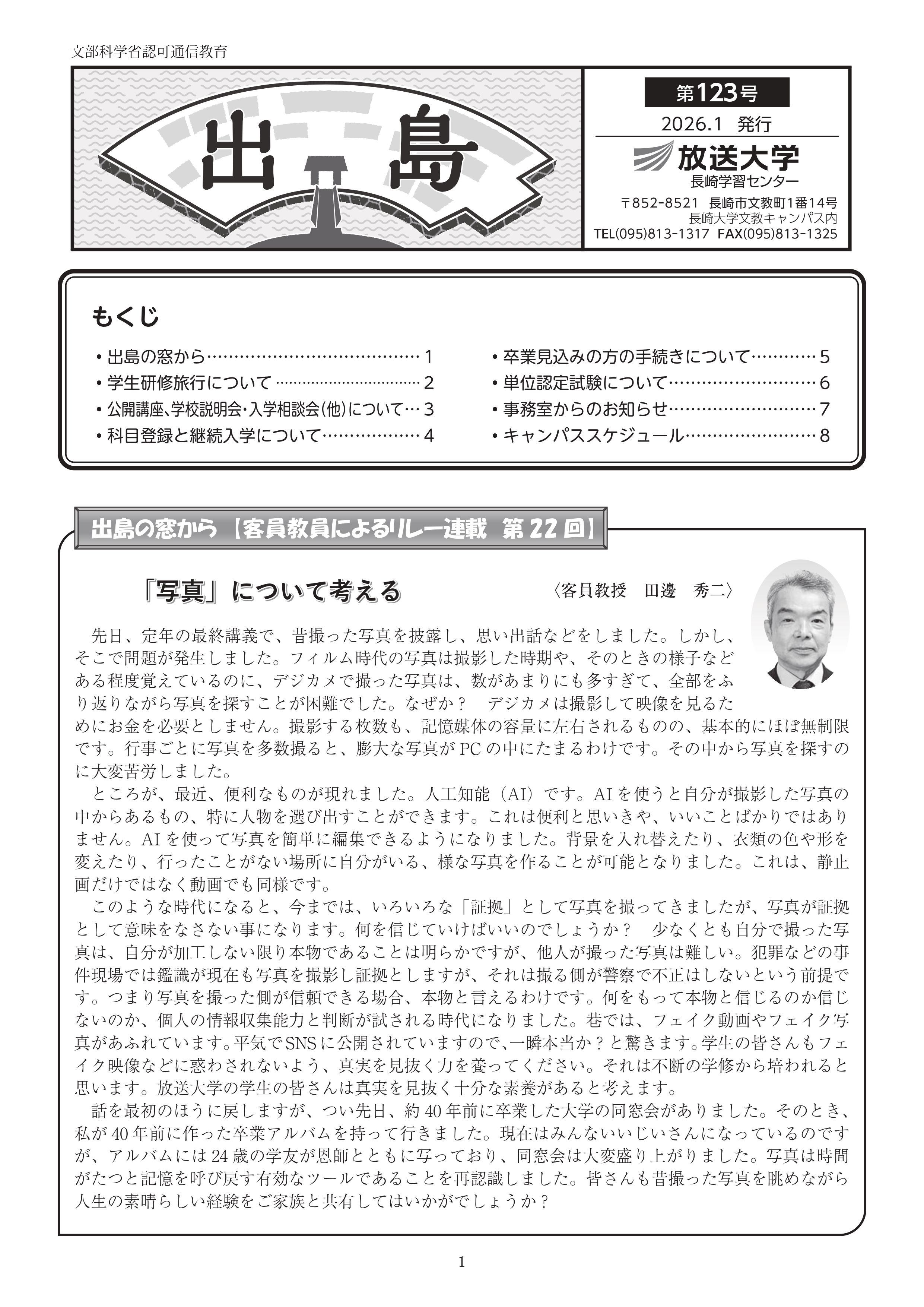 学習センター内で配付(長崎SC所属在学生へは郵送いたします)