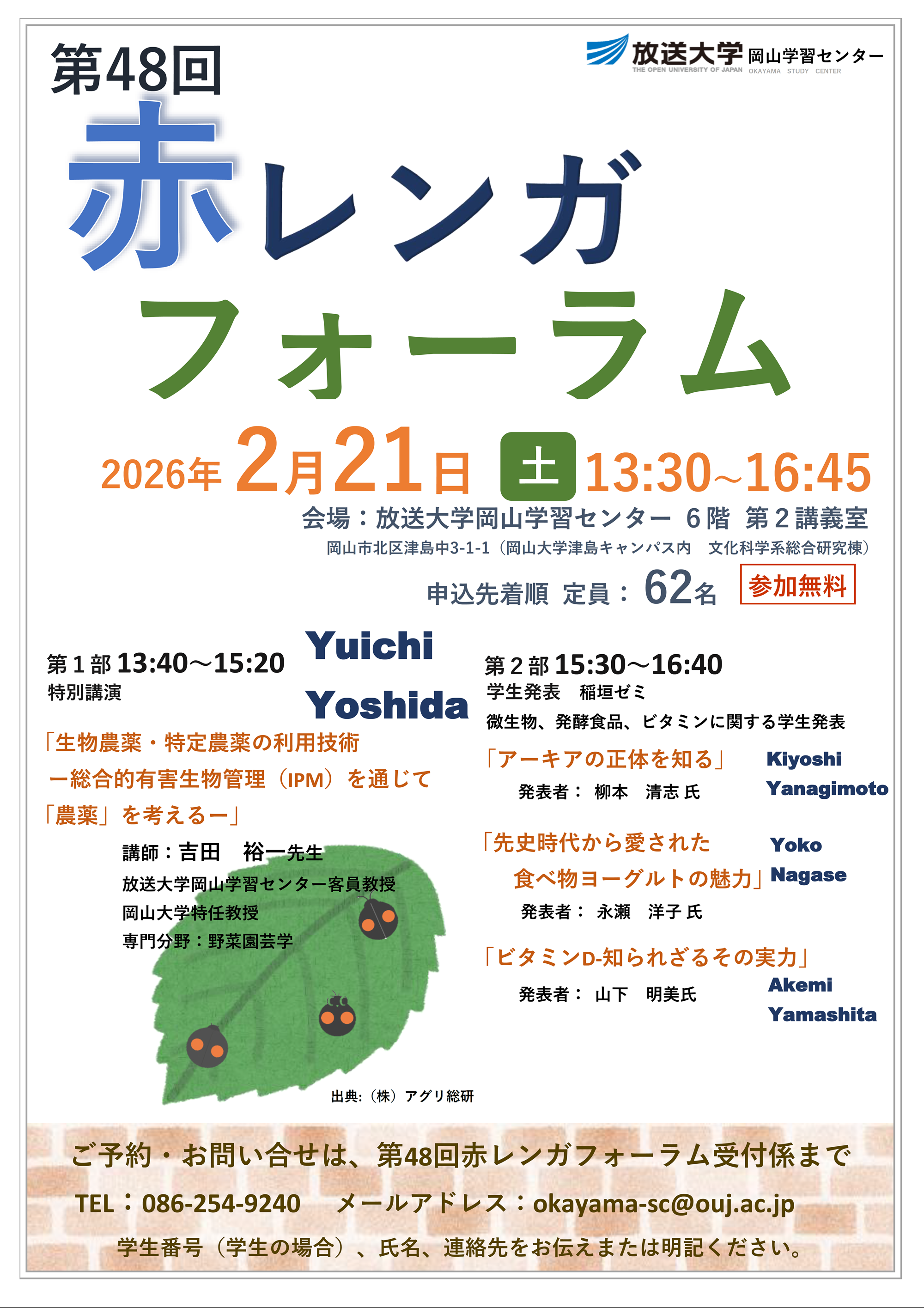 生物農薬・特定農薬の利用技術―総合的有害生物管理(IPM )を通じて「農薬」を考える―(放送大学岡山学習センター 第48回赤レンガフォーラム 特別講演)