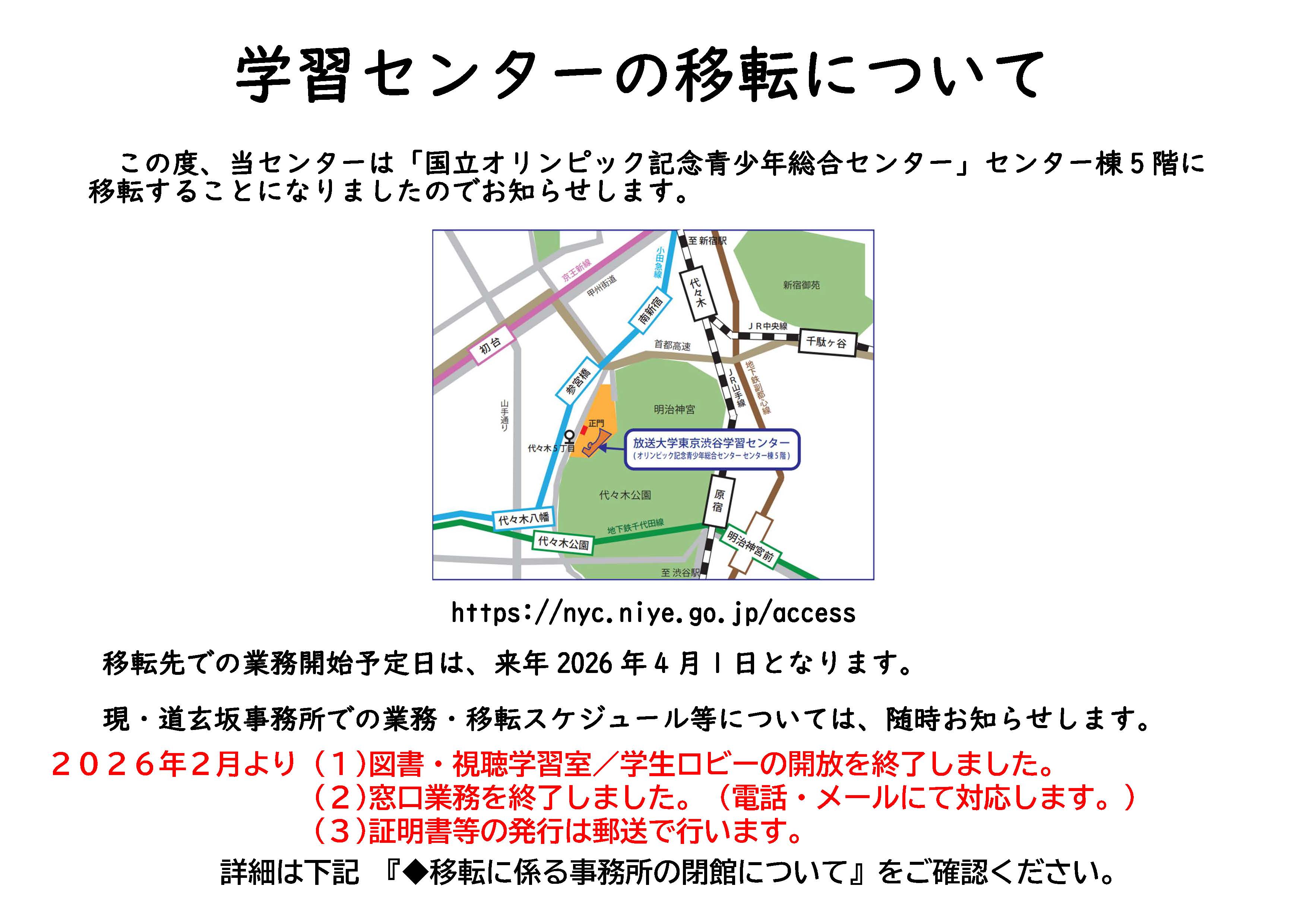 本部図書等資料の貸出・返却受付、文献複写物のお渡し、閉講授業のDVD閲覧はできません。